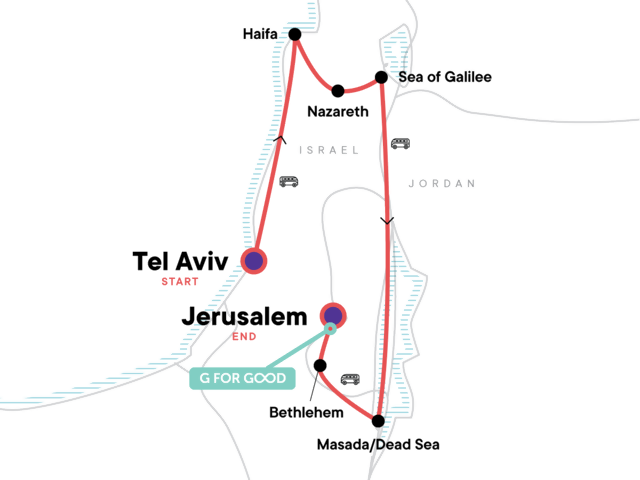 Please note that while this tour ends in Jerusalem any departing flights should be booked out of the Tel Aviv Ben Gurion Airport (TLV).